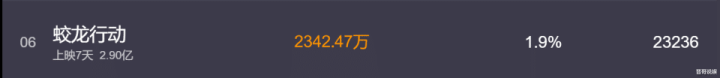 截至目前,《蛟龙行动》票房仅有2.9亿,如果说票房反映的是过往观众对这部电影的认可程度,那么只有5%的排片比例则说明了院线对这部电影的未来也很不看好。